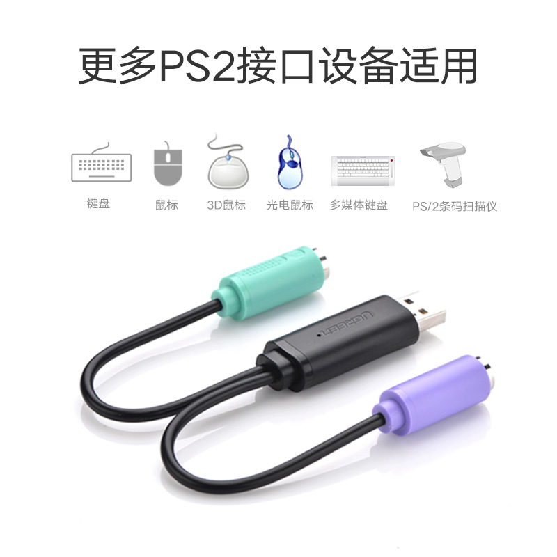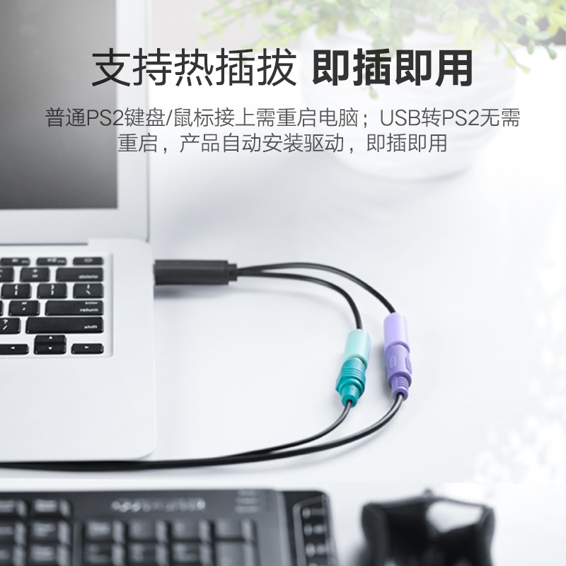 绿联ps2转usb转换接头线电脑鼠标键盘圆口圆头usb转接口ps2转换器