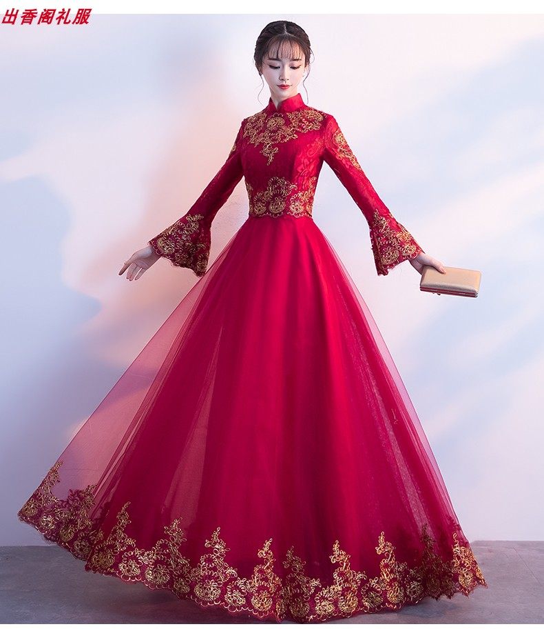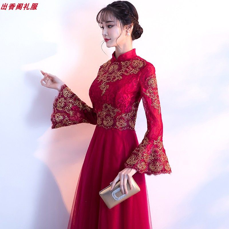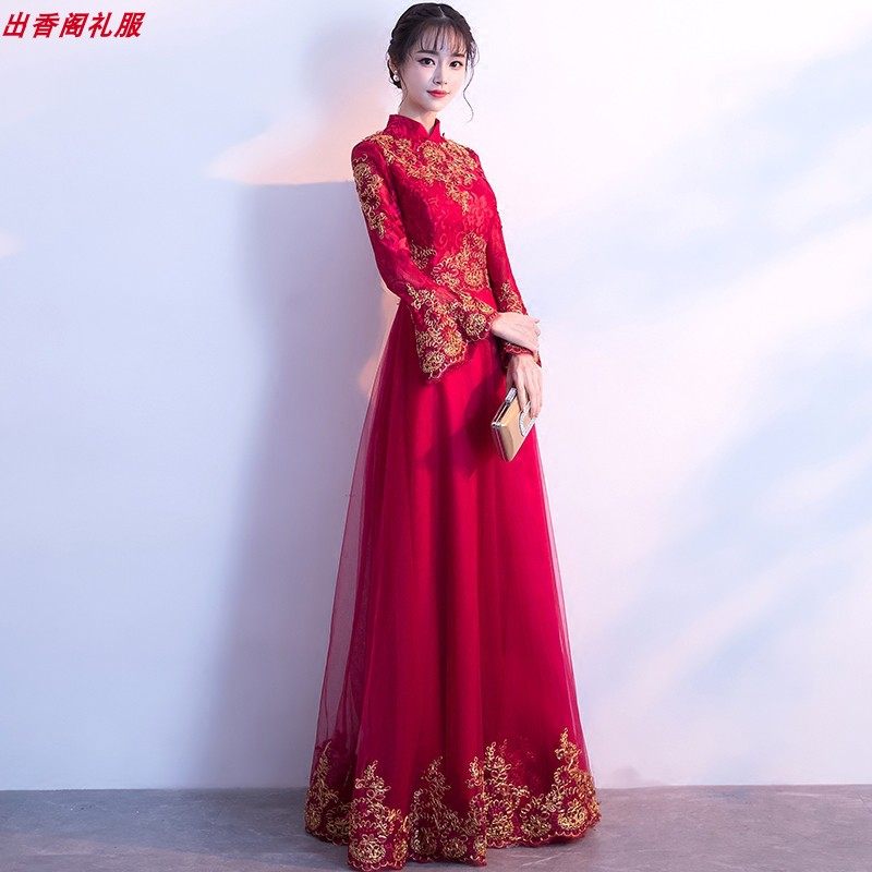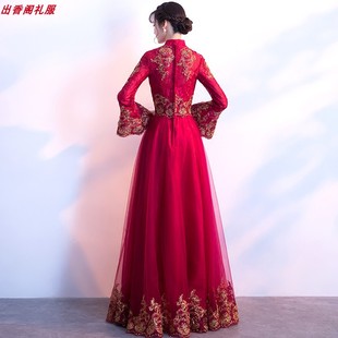 酒红色大码 夏季 孕妇秀禾服结婚礼服女大气 敬酒服新娘2020新款 中式