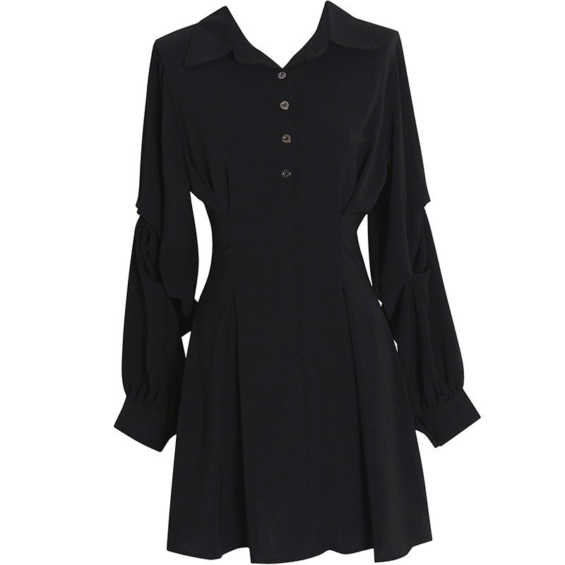自制黑色法式 短裙 连衣裙收腰显瘦气质赫本风小黑裙高腰裙子女衬衫
