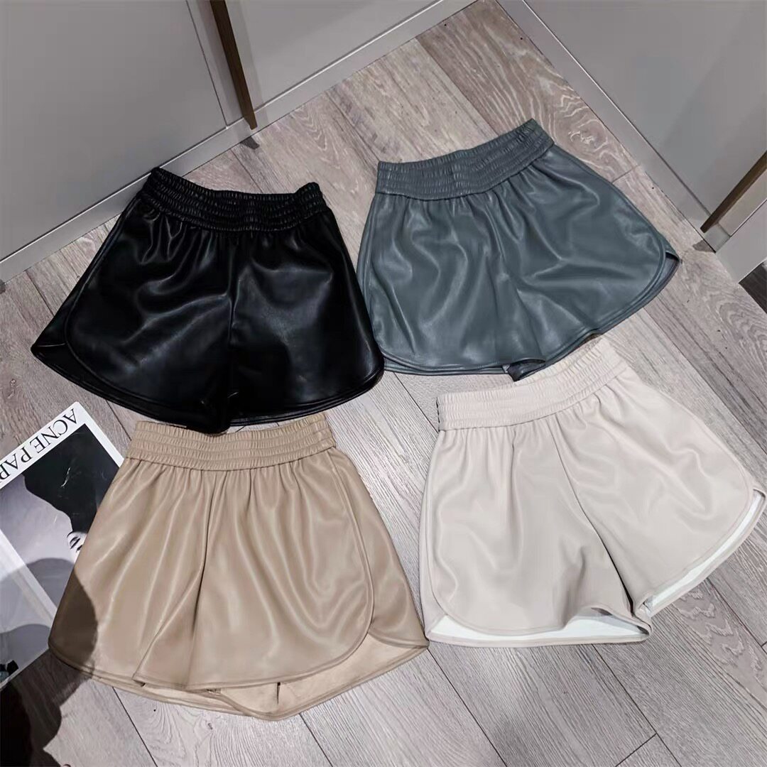 外穿百搭阔腿裤 女高腰a字黑色皮短裤 小羊皮真皮皮裤 2025秋冬新款