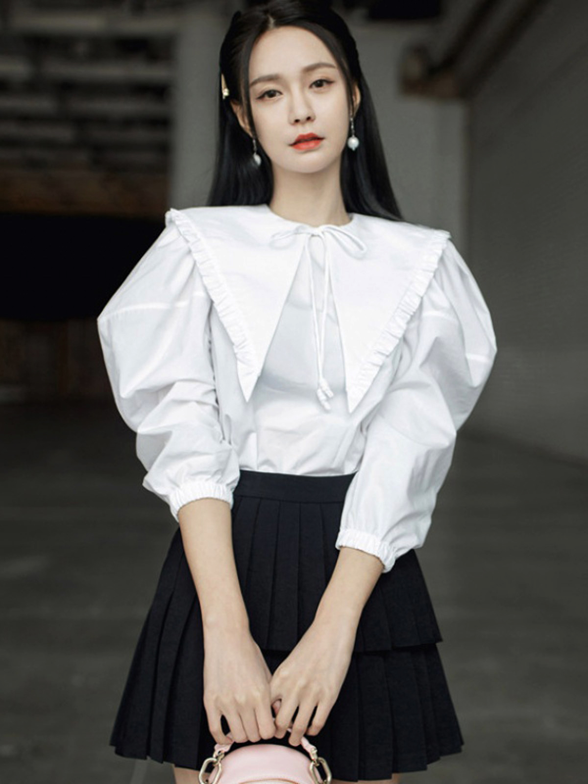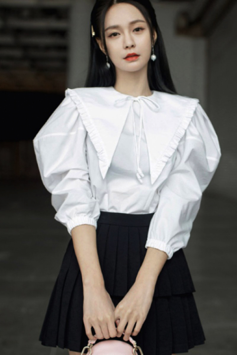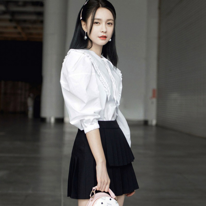 衬衫 纯棉高端长袖 女白色系带设计感小众娃娃领上衣 春季 沈梦辰同款
