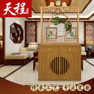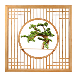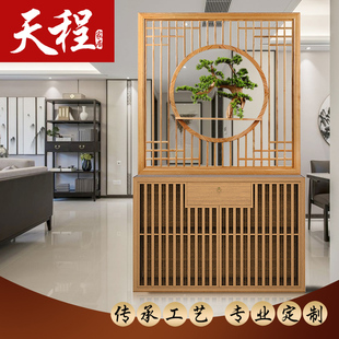 实木花格隔断墙新中式 入户玄关镂空屏风崖柏摆件遮挡格栅禅意绿植