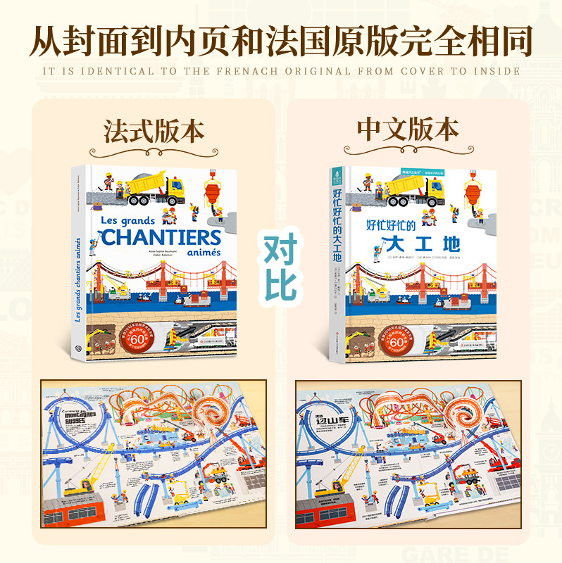 秘密图画书籍工程车挖掘机百科 好多好多交通工具儿童3d立体书翻翻书宝宝撕不烂汽车早教启蒙绘本飞机宇宙大工地运转 法国引进