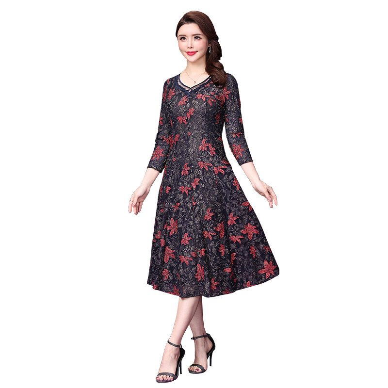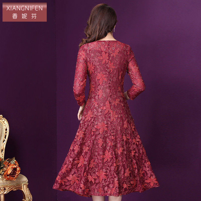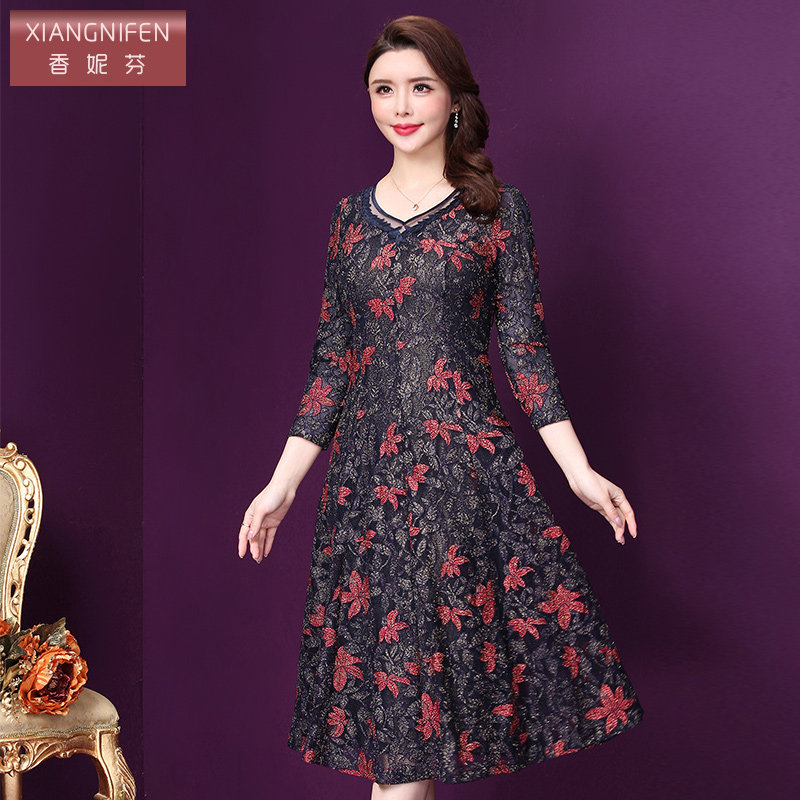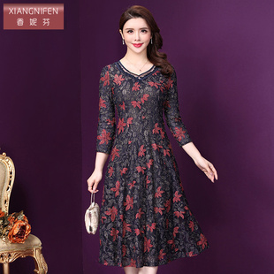 香妮芬2025春秋新款 金线蕾丝裙子女仙女洋气贵夫人连衣裙子减龄裙