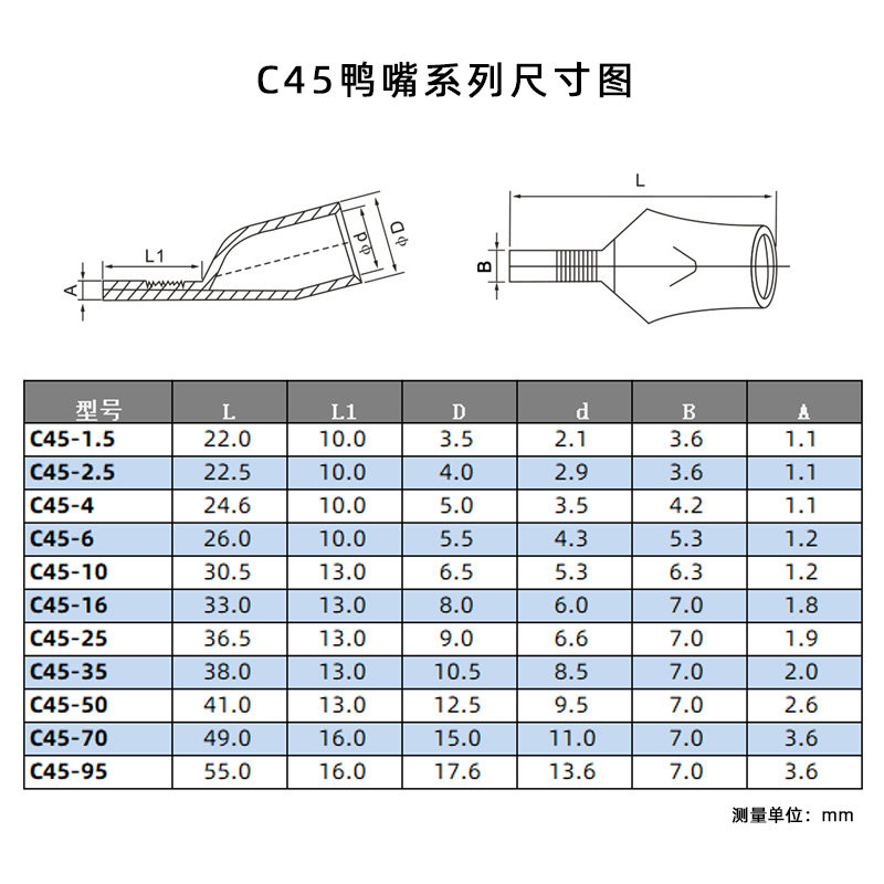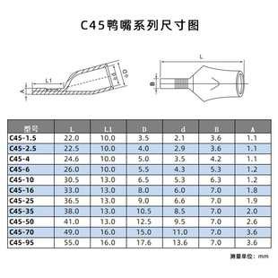 2.5 70平方紫铜线耳插针接线端子 鸭嘴鼻C45