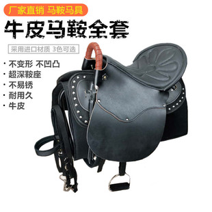 马鞍子全套马鞍马具配件牛皮军鞍大马游客鞍小马骑士马术用品 包邮