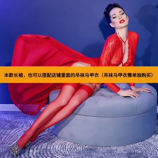 欧美高开叉小礼服女神夜店蕾丝性感连衣长裙红色女王装 年会表演透