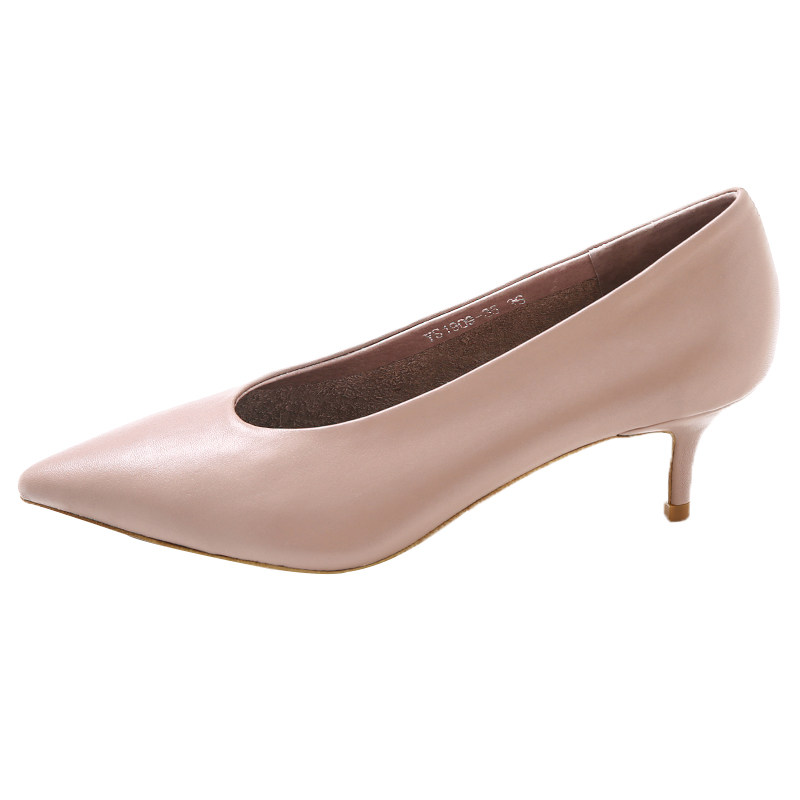 浅口通勤高跟鞋 羊皮版 尖头单鞋 气质一字扣带粗跟玛丽珍女鞋 法式