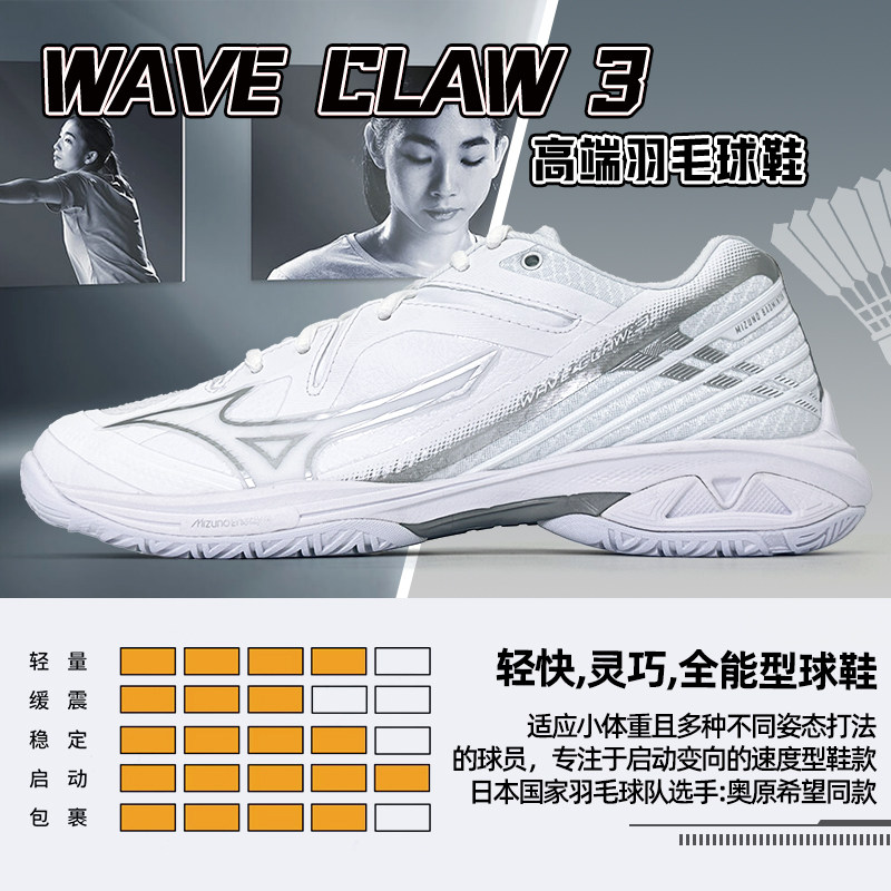 奥原希望运动鞋 CLAW 男女专业防滑鹰爪WAVE Mizuno美津浓羽毛球鞋
