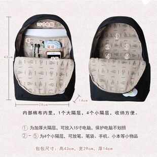 ins风书包女韩版 高中大学生简约百搭背包校园简森系帆布双肩包潮