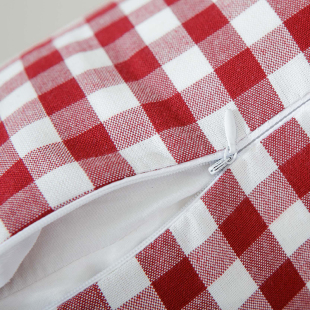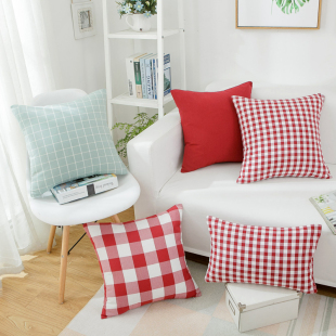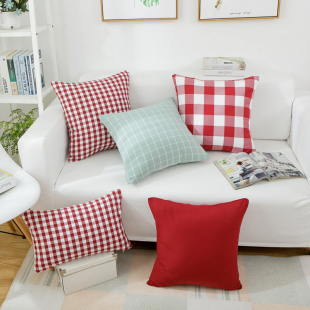 棉麻抱枕靠垫靠枕办公室套芯定制汽车沙发腰部玫红小格子条纹纯色