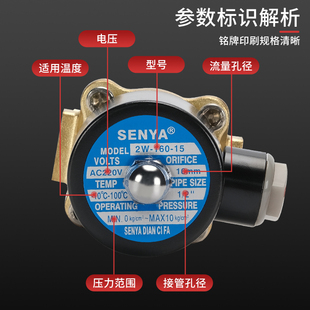 040 082w 15铜阀铝线 森亚SENYA常闭水阀电磁阀2w 160 025