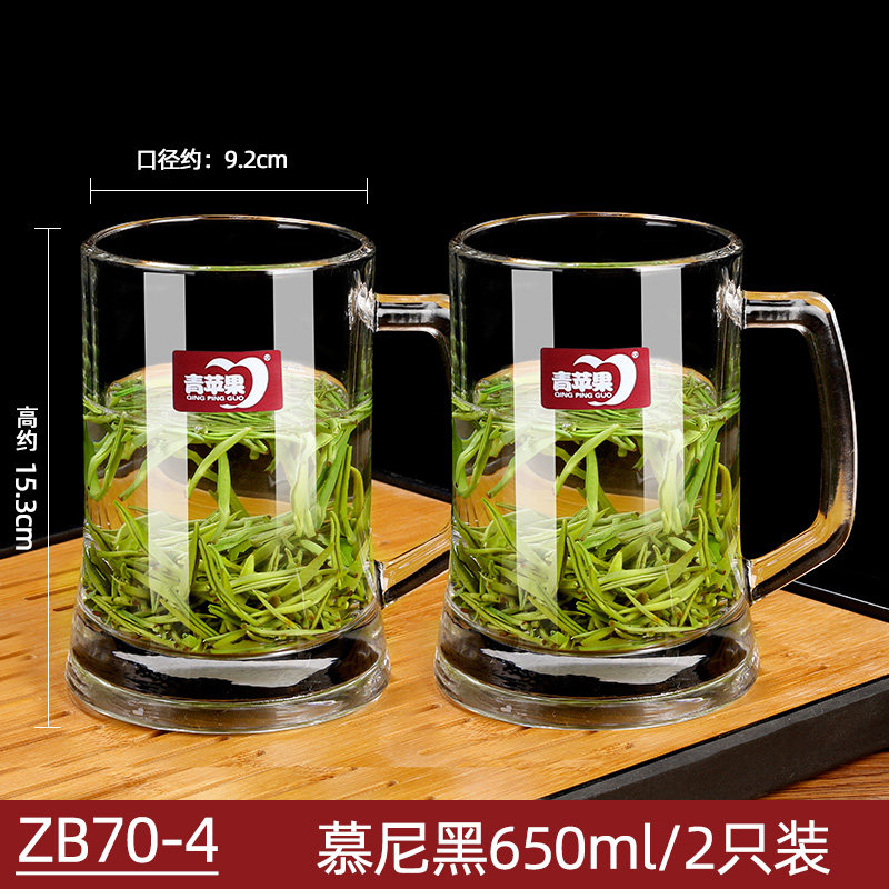 青苹果日式 耐热玻璃杯家用泡茶杯牛奶带把茶饮杯喝水杯子办公杯子