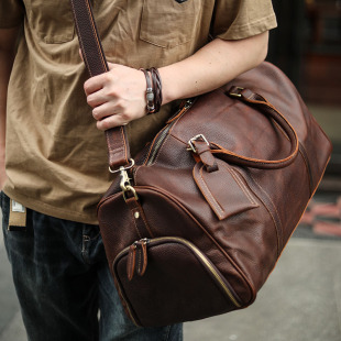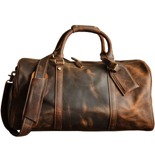 欧美牛皮男士 手提户外露营旅行包真皮大容量登机包出差短途行李袋