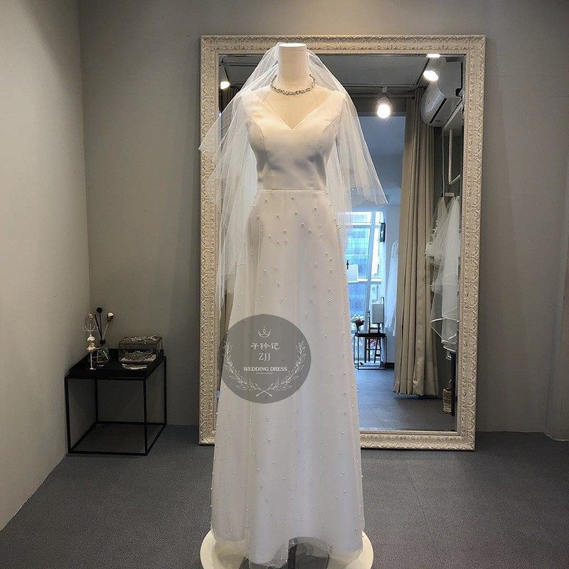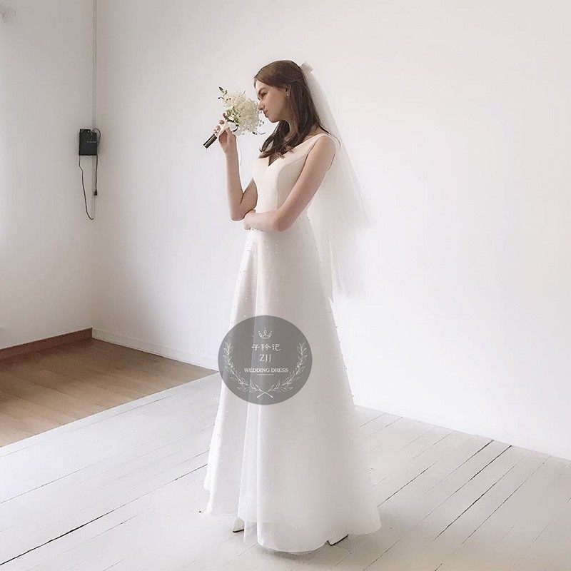 轻纱齐地出门纱抹胸简约大拖尾主纱 主婚纱韩式 婚纱2025新款 新娘