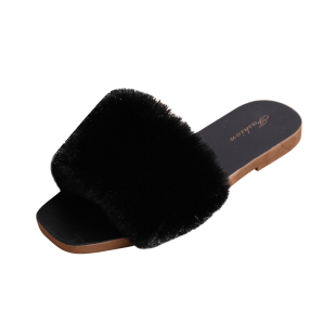 潮时尚 女外穿网红韩版 百搭学生平底防滑室内一字 毛毛拖鞋 秋冬新款