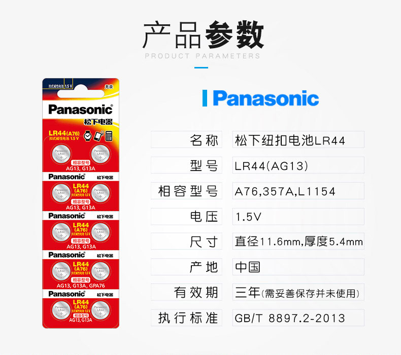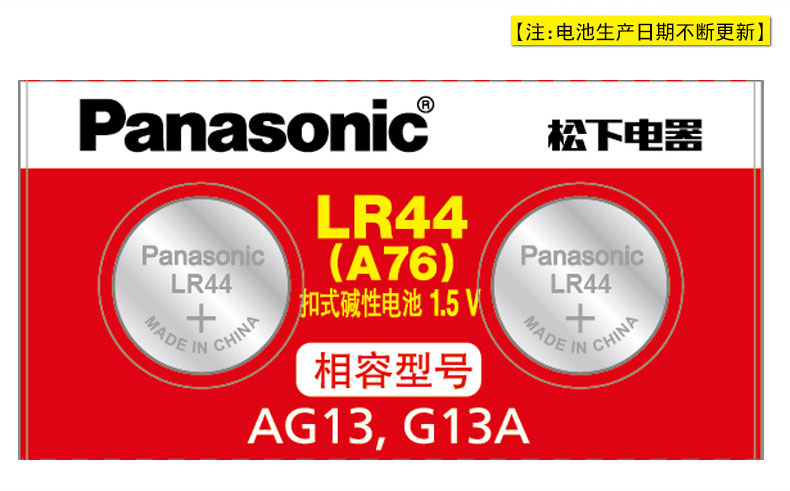 松下LR44h纽扣电池AG13电子A76小粒适用于卡西欧计算器L1154c玩具