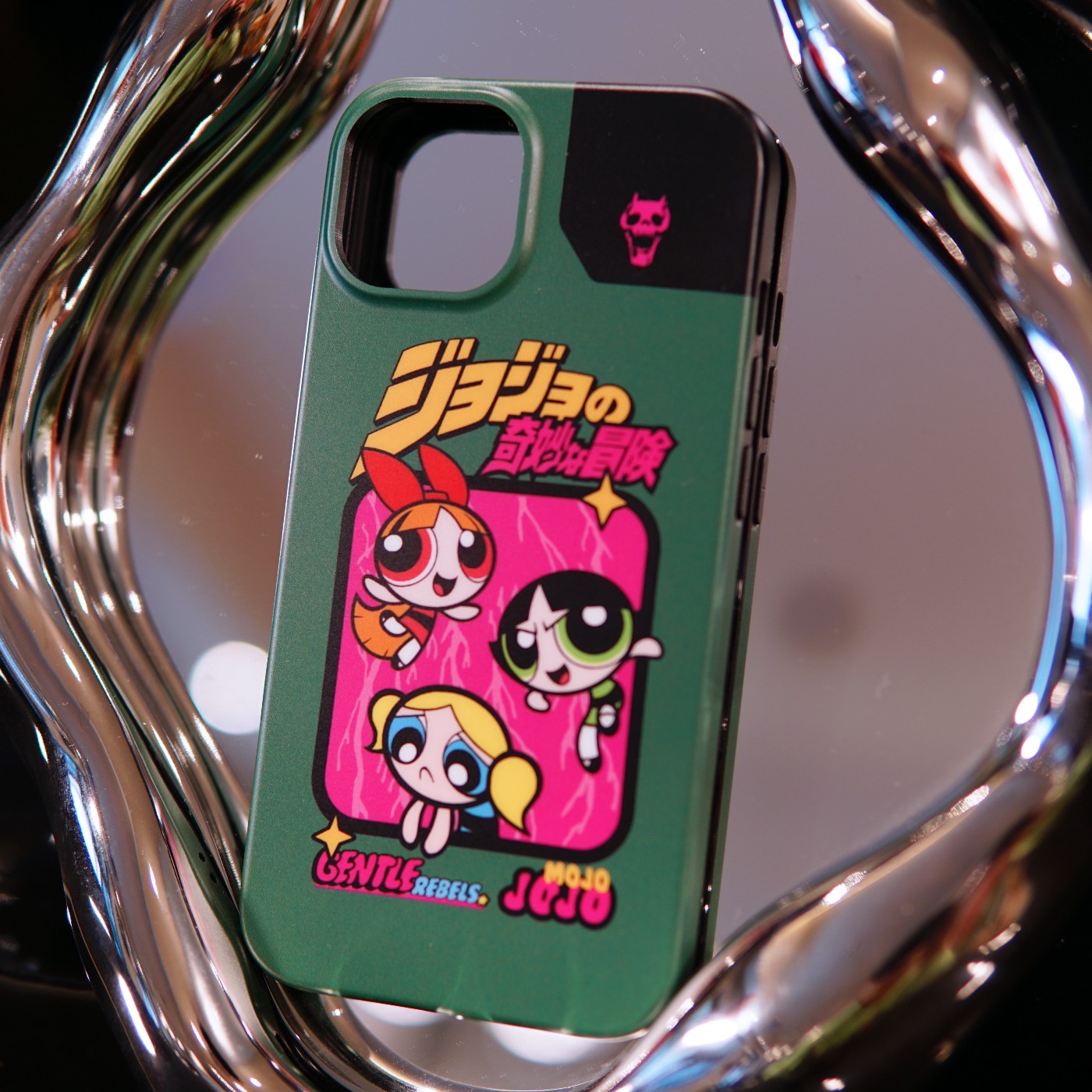 恶搞粉色闪电 卡通JOJO小女警手机壳适用苹果16iPhone15promax可爱酷墨绿色花花毛毛泡泡经典 GENTLE REBELS