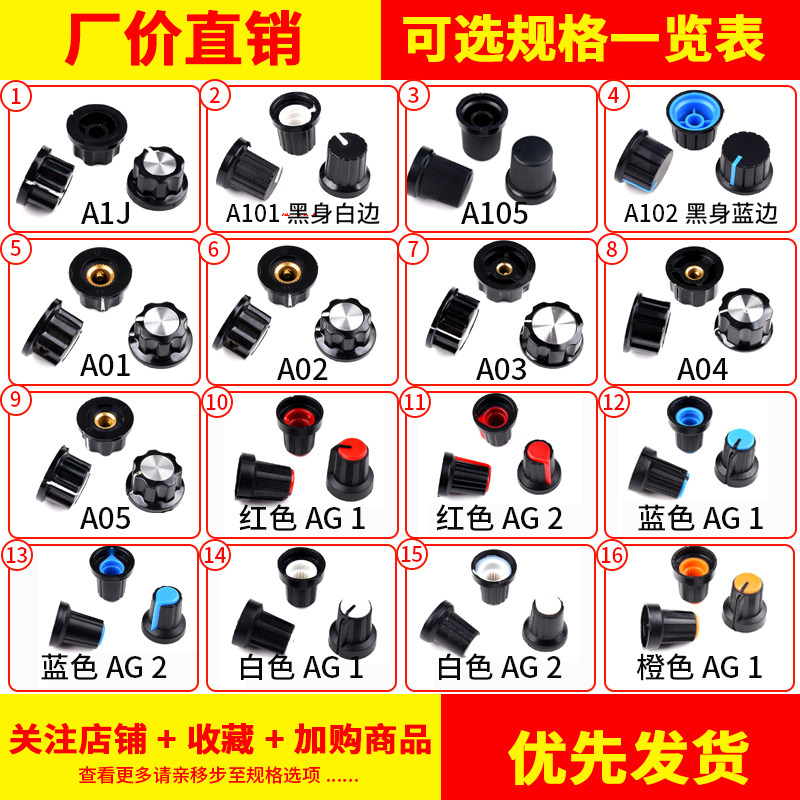 WH148电位器旋钮MF A01A02A03A04A05胶木RV24帽子6mm梅花柄WTH118
