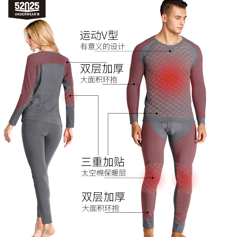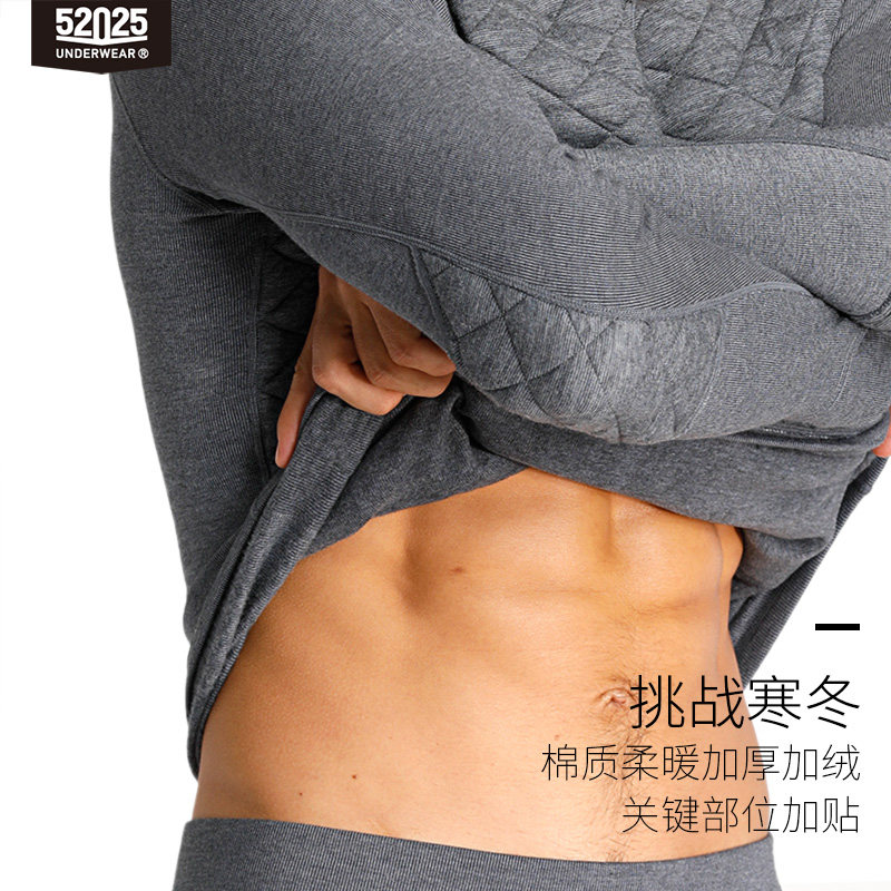 老寒腿 冬季 52025智暖X3太空棉三层加厚加绒加贴保暖内衣男式 套装