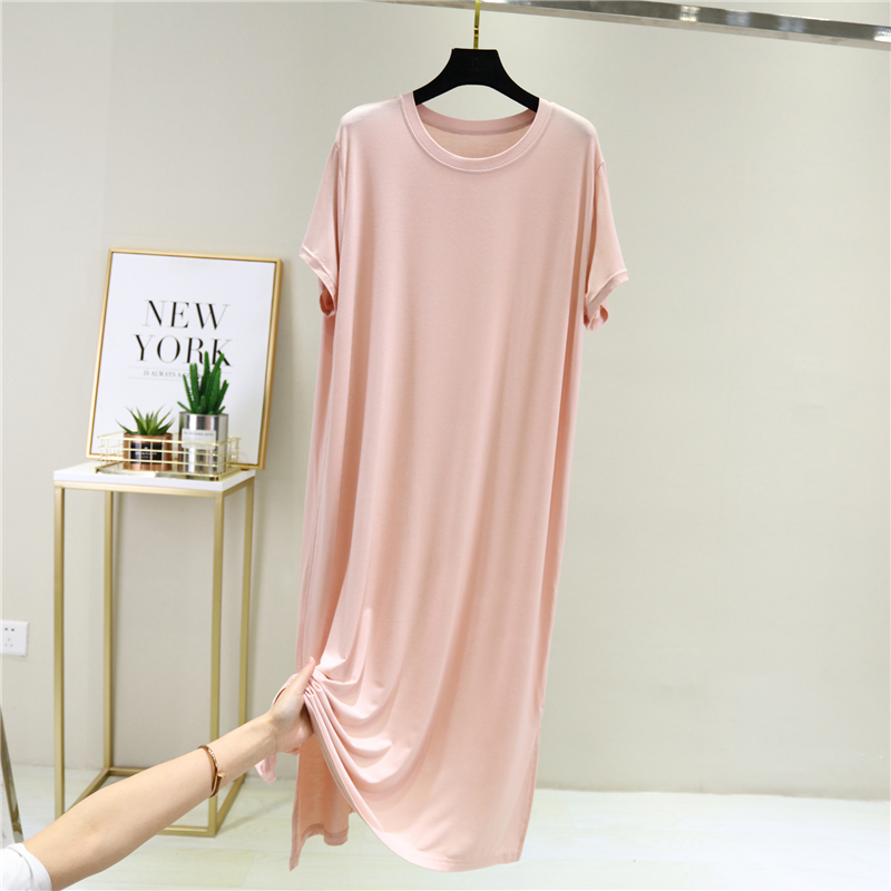开叉T恤裙宽松睡裙百搭长裙子 连衣裙夏外穿加肥加大短袖 韩版 大码