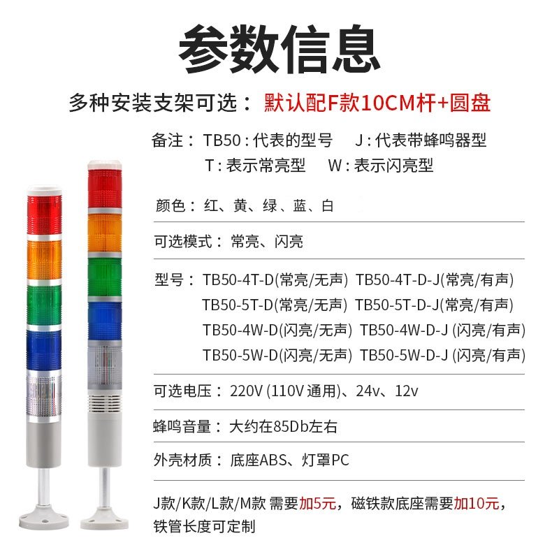 5TW J带蜂鸣信号灯报警示灯 LED四五4色5层常闪亮指示灯TB50