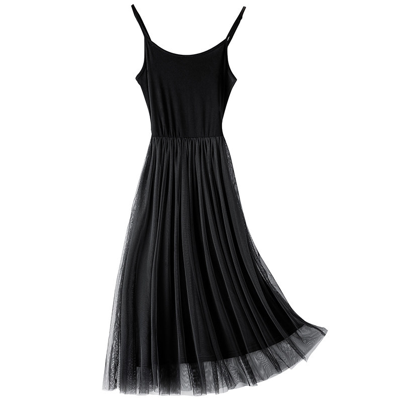 莫代尔连衣裙女春秋2025新款 网纱吊带裙 外穿显瘦气质裙子超仙长款