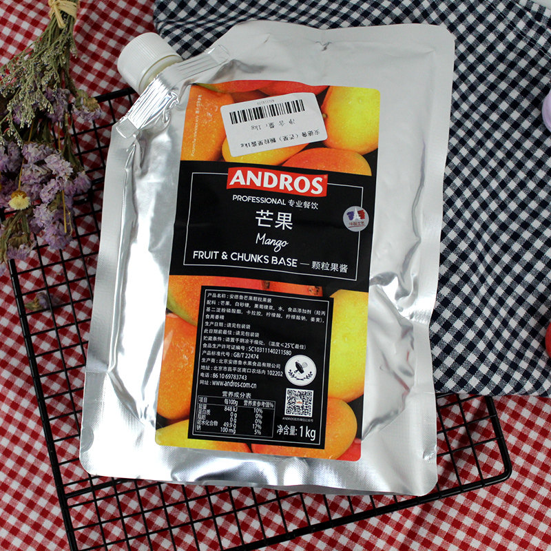 安德鲁草莓颗粒果酱 乐桃桃菠萝白桃茉莉青葡萄颗粒酱1kg西点奶茶