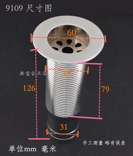 下水管 新宝家套装 不锈钢新款 加厚加长螺纹池下水器口皮塞堵头式