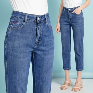 女夏季 中裤 薄款 小个子高腰显瘦八分直筒胖mm大码 子 新款 七分牛仔裤