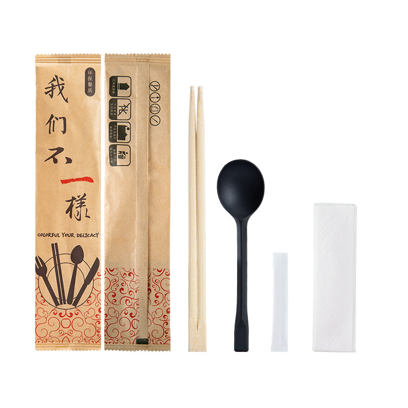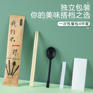 一次性筷子套装 四件套外卖四合一餐具包餐纸巾勺子牙签牛皮纸包装