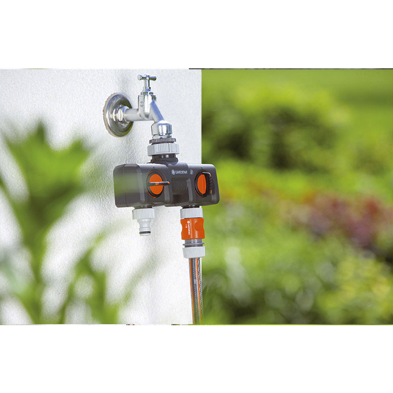 德国进口嘉丁拿两路分水器 双开双控一分二接头 双水龙头一进二出