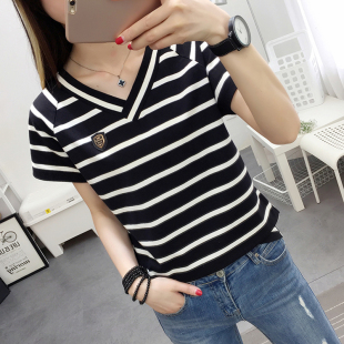 新款 t恤半袖 胖MM大码 体桖洋气减龄纯棉V领短袖 上衣服 女装 2025夏装