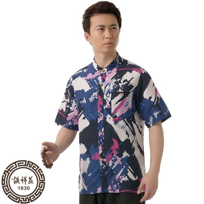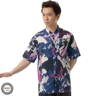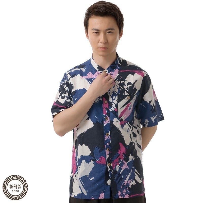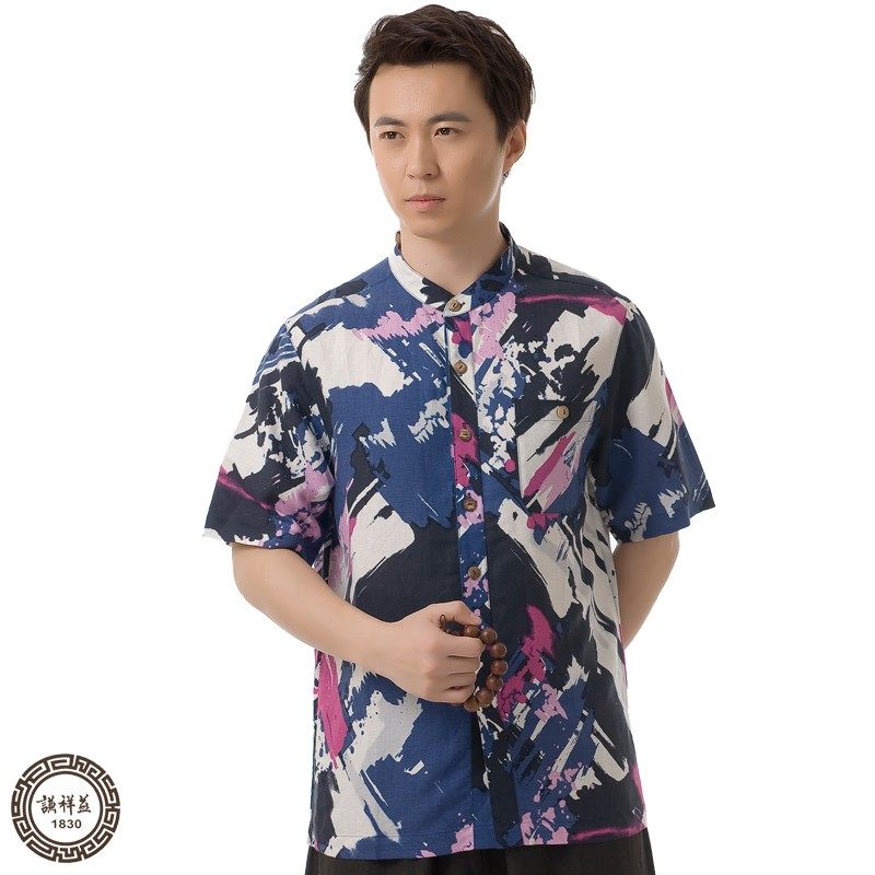 唐装 中青年休闲时尚 男短袖 亚麻立领衬衫 民族风上衣 中式 中国风夏装