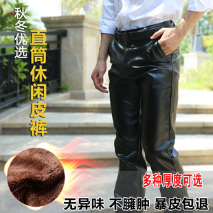 防风防湿耐磨污皮裤 春秋季 休闲高腰秋冬直筒加绒大码 中年男式 男士