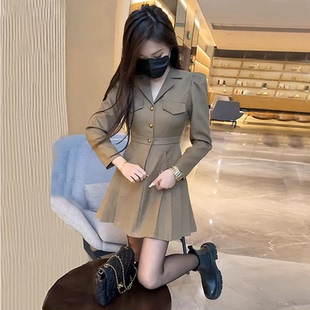 法式 气质A字裙子6541 轻奢高级感收腰性感连衣裙2025春V领显瘦修身