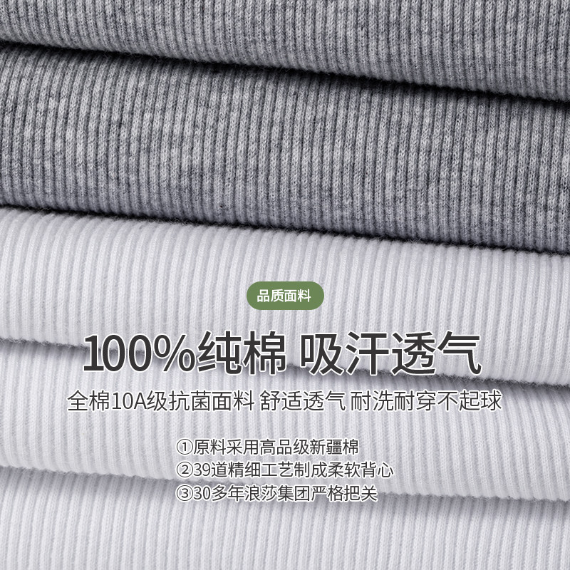 二道杠100%全棉运动健身打底跨栏粗螺纹 薄款 浪莎男士 背心纯棉夏季
