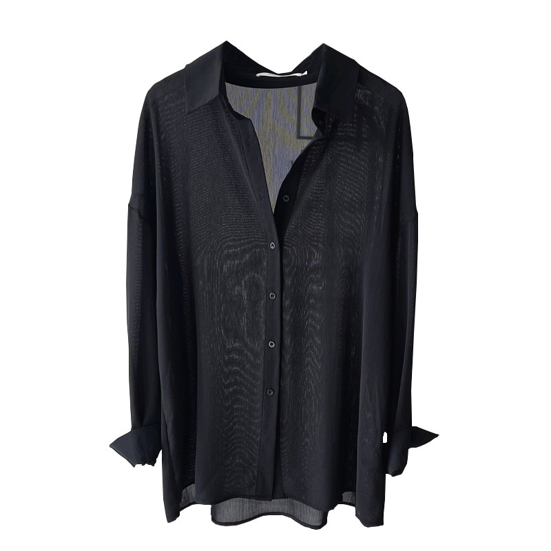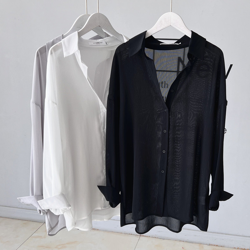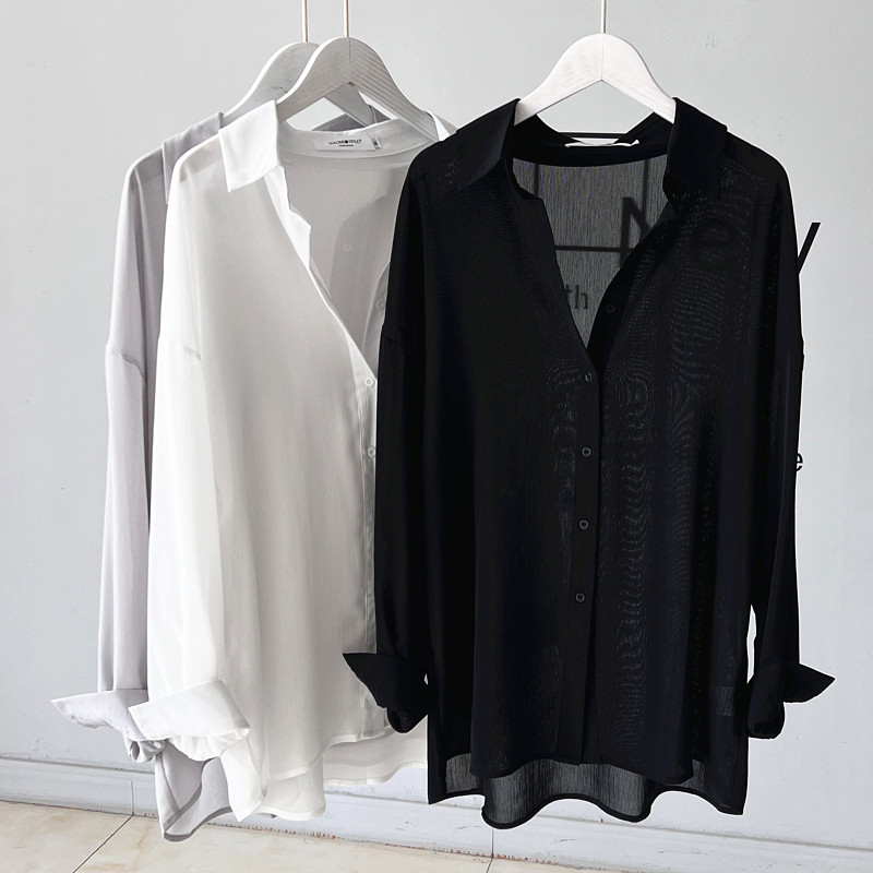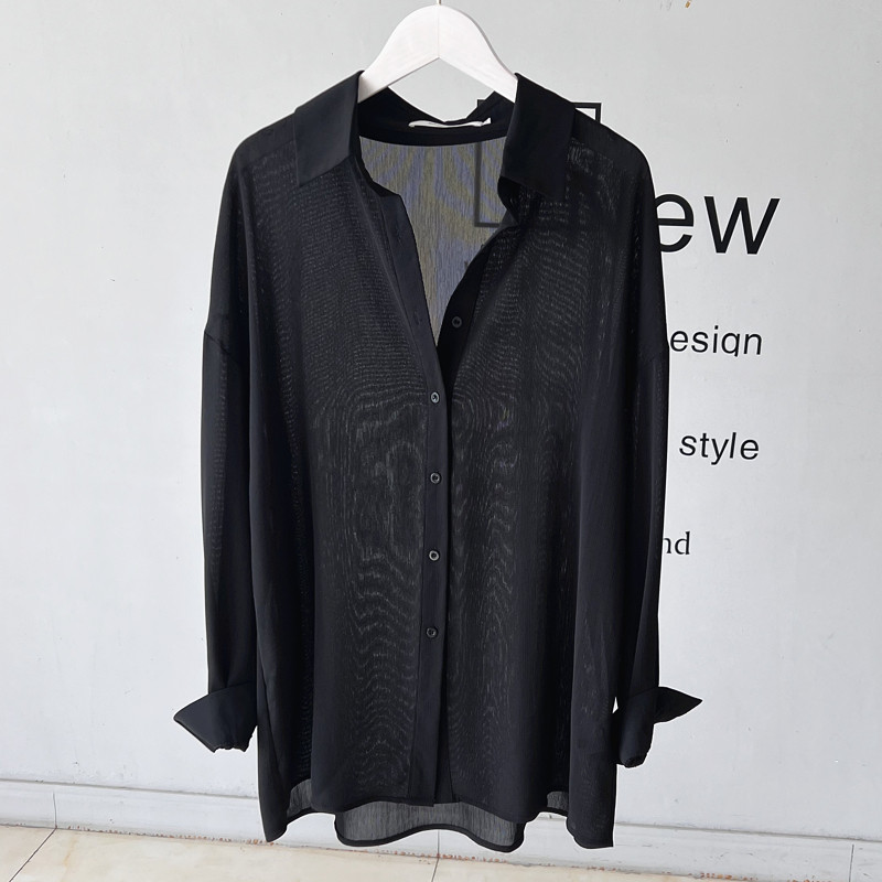 半透视防晒衬衫 肌理感女夏天雪纺垂感遮阳衬衣外搭黑色白色防晒衫