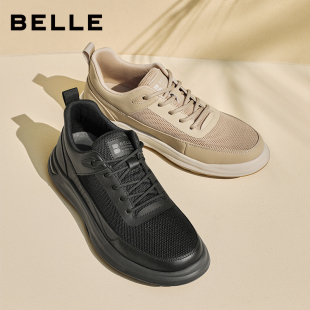 A1447 夏新黑色爸爸鞋 百丽男士 网面一脚蹬轻便透气健步休闲运动鞋