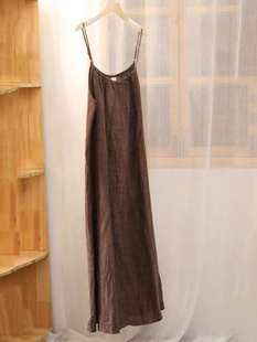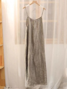 文艺褶皱吊带长裙砂洗亚麻扎染纯色连衣裙女百搭纯色外套裙套装