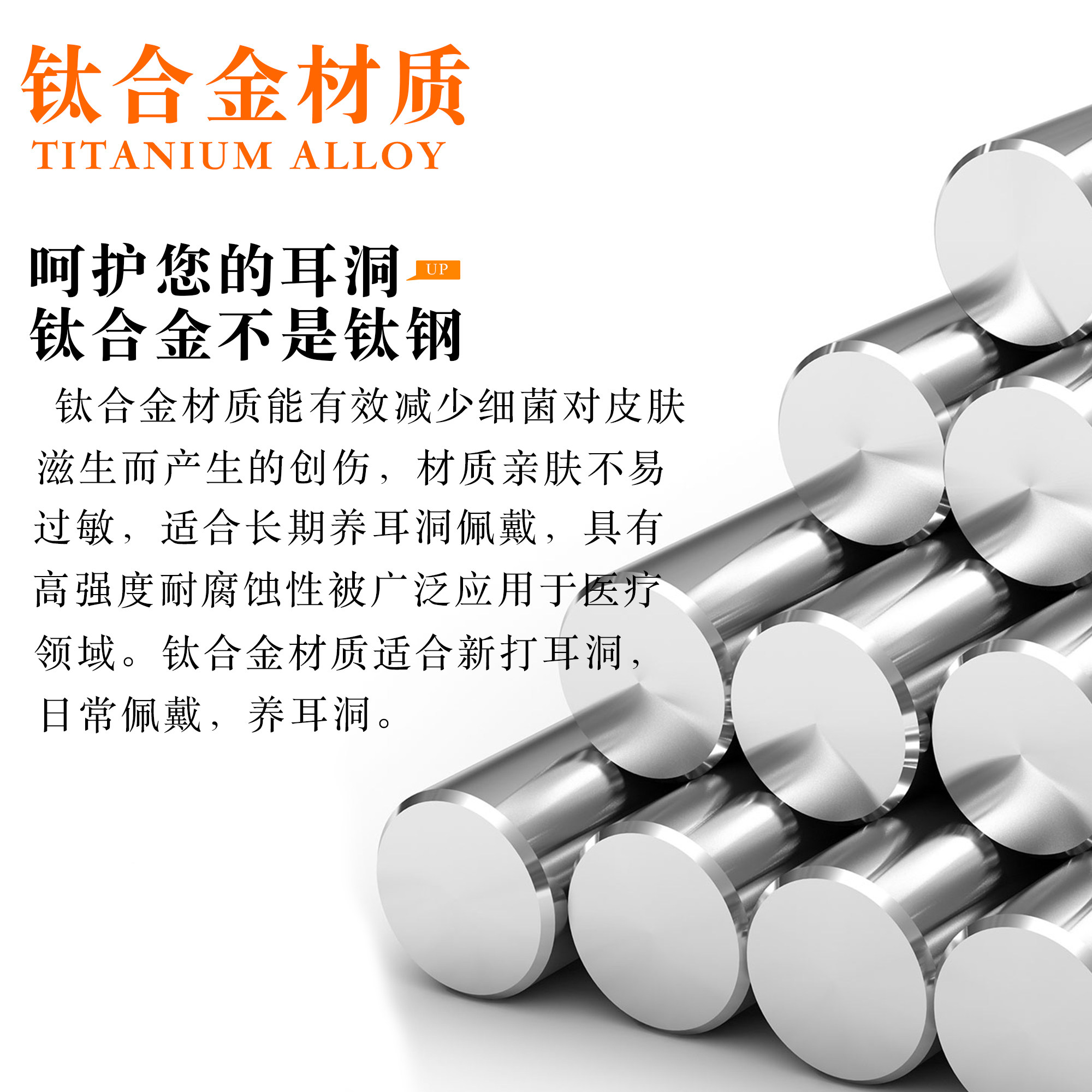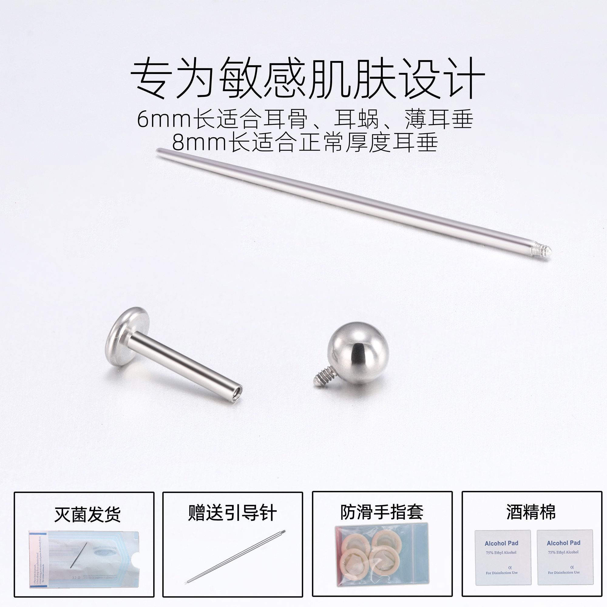 F136钛合金耳钉医用植入级防过敏养耳洞唇钉耳蜗耳骨钉睡觉免摘
