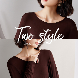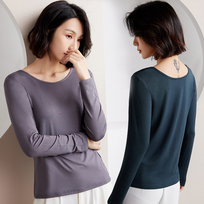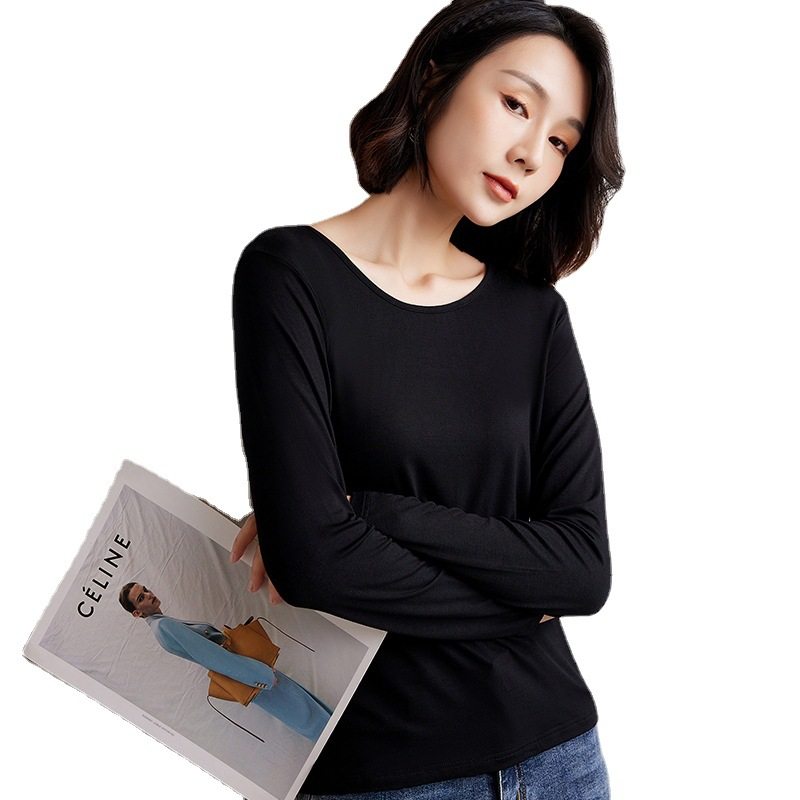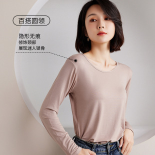 长袖 莫代尔女士圆领内搭上衣修身 T恤薄款 时尚 秋季 简约打底衫 新款