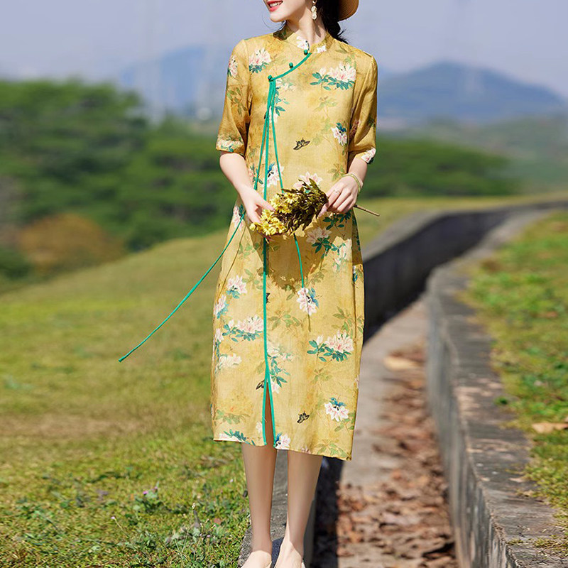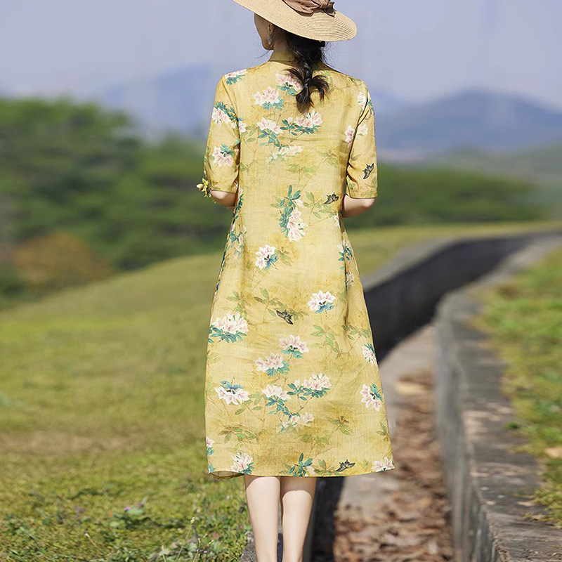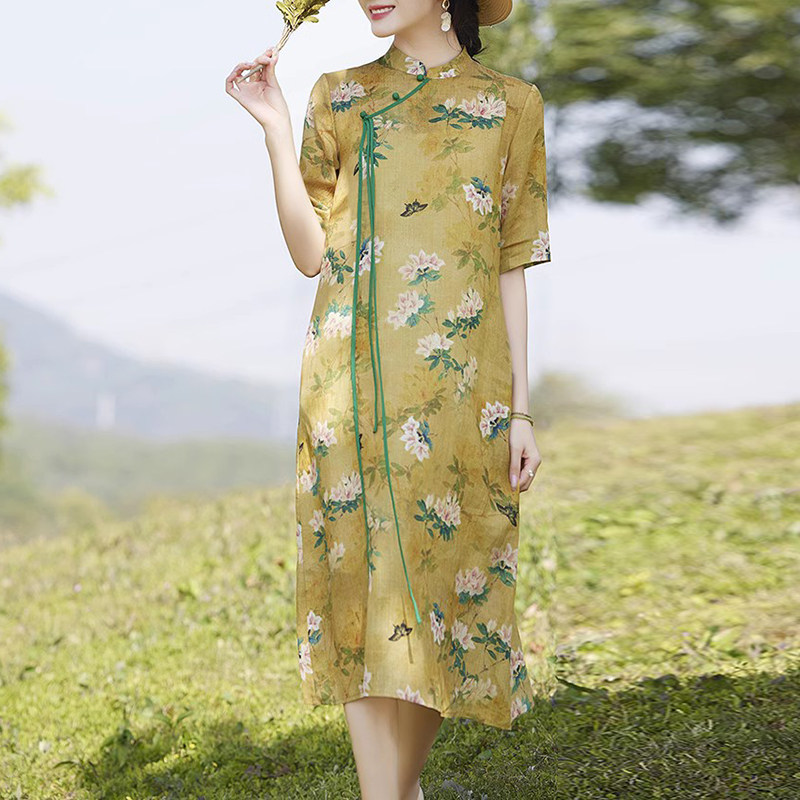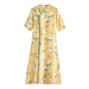 高支苎麻印花设计感新中式 新品 改良旗袍连衣裙 夏季 念棉麻江南女装