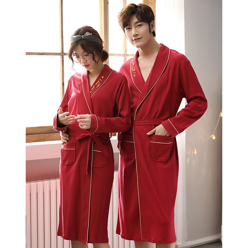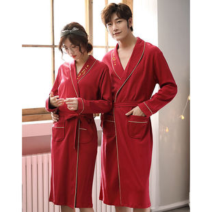 红豆情侣睡袍抗静电珊瑚绒长款 加厚法兰绒家居服浴袍男 睡衣女冬季