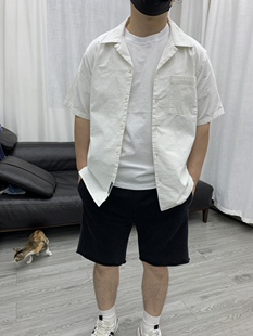纯棉水洗男衬衣宽松日系夏季 衬衫 休闲港风上衣 复古古巴领短袖 美式