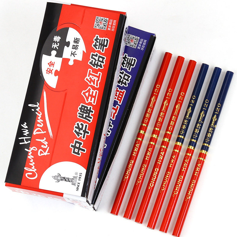 正品 双头医学圆杆特种护士专用基建实验室圆形红铅笔标图绘图木工体温单记号铅笔专用 中华牌120红蓝双色铅笔