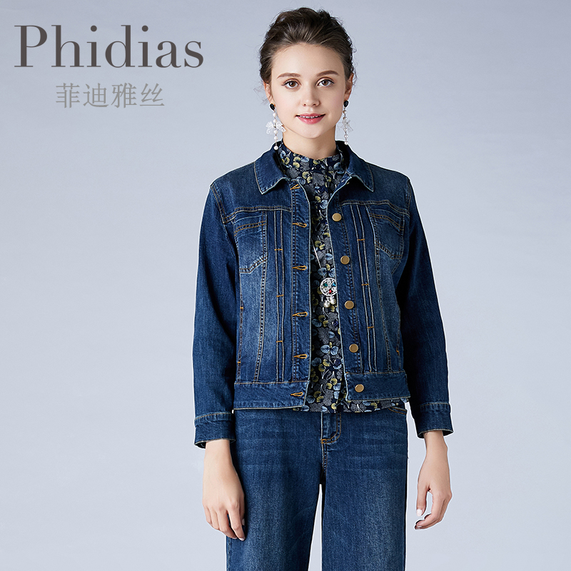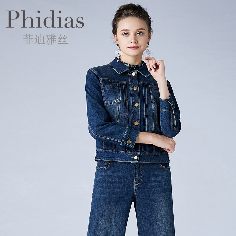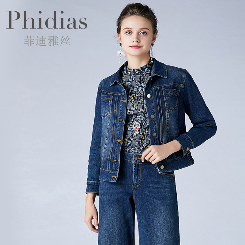短款 Phidias牛仔外套女春秋2024新款 宽松深蓝色开衫 韩版 外套 长袖