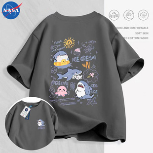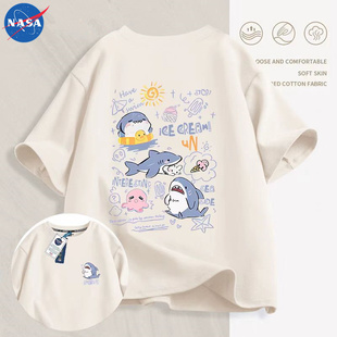 半袖 夏季 ins上衣潮流 t恤男女情侣2025新款 NASA卡通可爱鲨鱼短袖