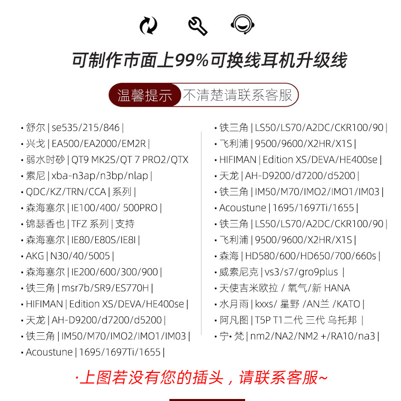 7N单晶铜0.78MMCX耳机线QDC IE900定制IE500PRO三合一插头升级线