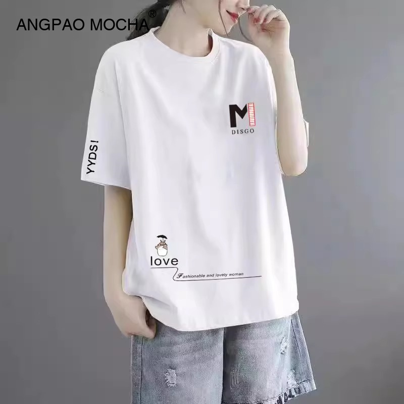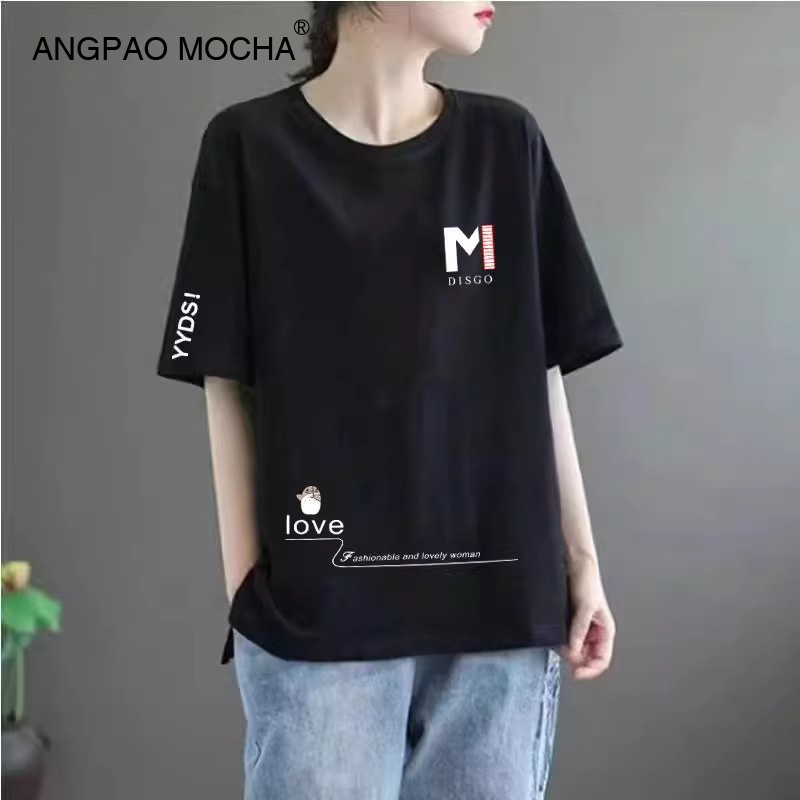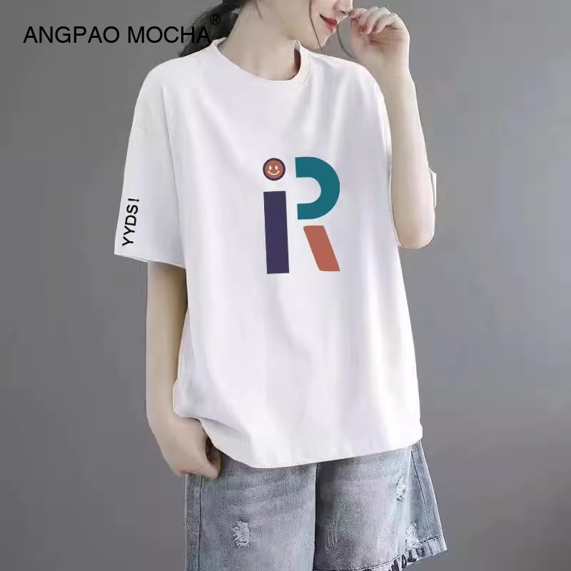 短袖 大码 新款 2025年夏季 t恤女复古印花宽松舒适透气体恤上衣 女装
